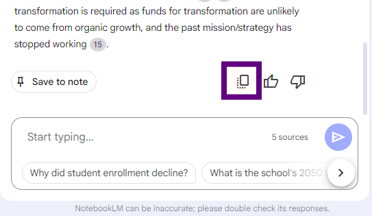 The guide below is designed to help you navigate the NotebookLM site containing the strategic plan. Rather than teaching you every feature of the platform, these instructions are focused on helping you get quick answers.